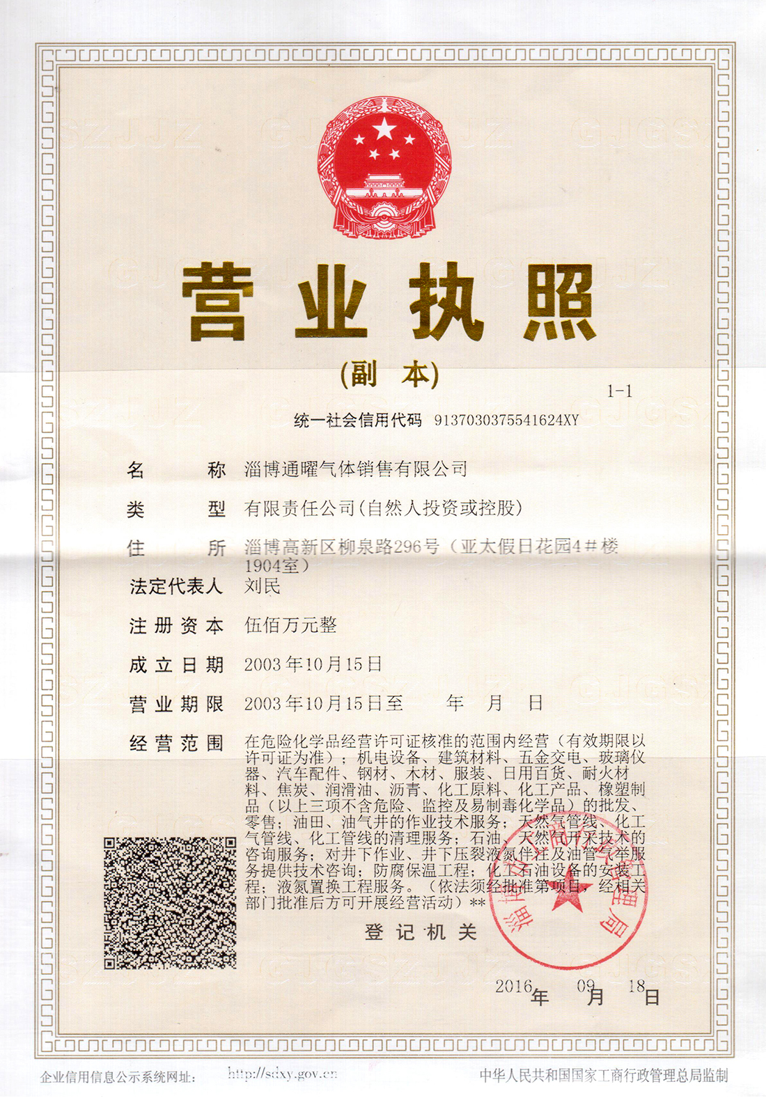 淄博通曜氣體銷售有限公司是長江以北地區(qū)較大的生產(chǎn)、銷售、運輸液氮的專業(yè)化公司,也是山東省的氣體銷售龍頭企業(yè)。自2003年公司成立以來,按照行業(yè)規(guī)范及現(xiàn)代化企業(yè)制度的要求,以市場為導向、以客戶為己任、以質量求生存、以服務謀發(fā)展!近20年來,在行業(yè)內已經(jīng)成為標準化、規(guī)范化國內數(shù)一數(shù)二的低溫液態(tài)氣體專營公司。